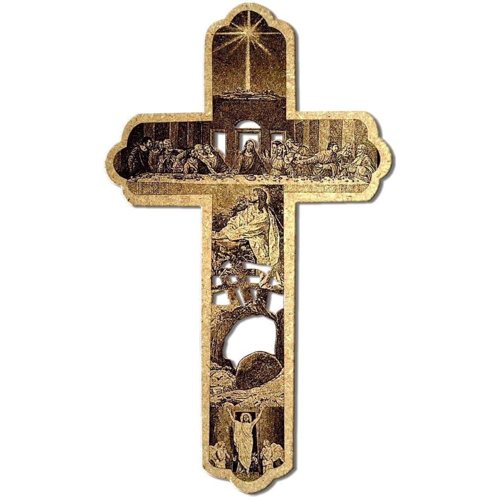 Incredible Gifts India Engraved Jesus Christ Story on Wooden Cross for Christmas Decorations (MDF Wood, 30.5 x 17.8 cm), Wall Hanging