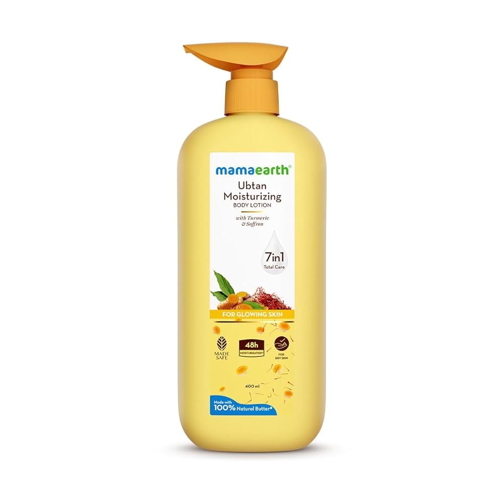Mamaearth Ubtan Moisturizing Body Lotion with Turmeric & Saffron for Glowing Skin 400 ml | 48H Moisturization | Nourishes Dry Skin | 7in1 Total Care | 100% Natural Butter |…